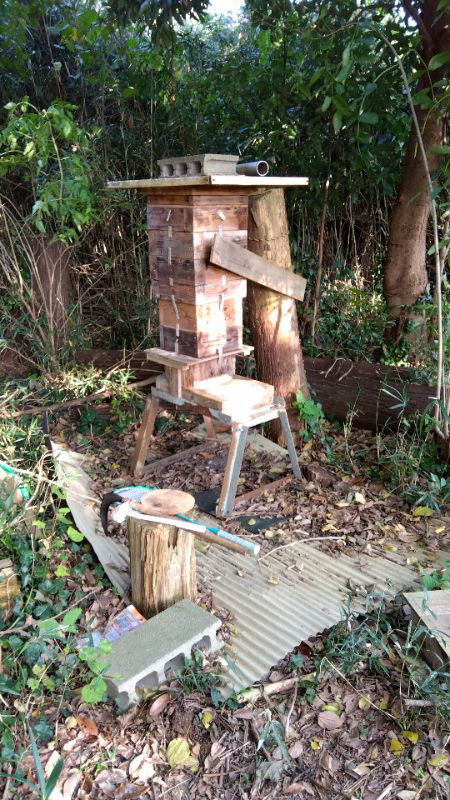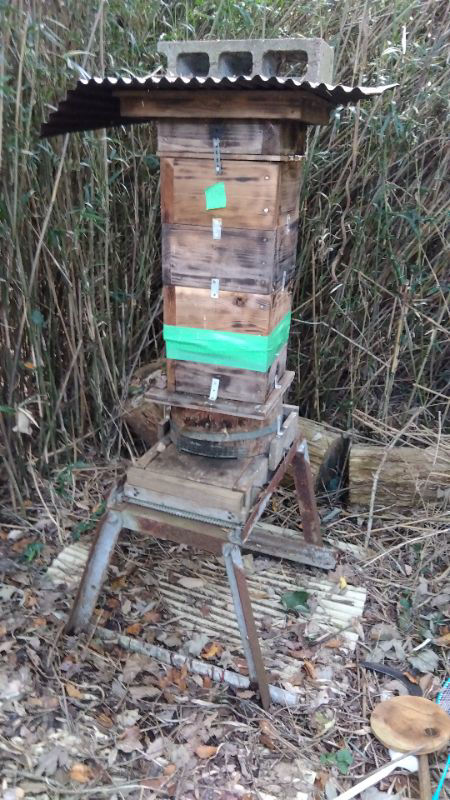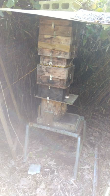 ⇧⇩ 竹藪群4月22日自主入居、薄暗い穴ぼこ藪であるが、5段がいっぱいになった、継箱の必要。