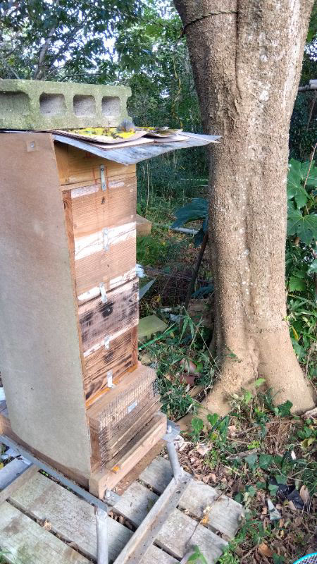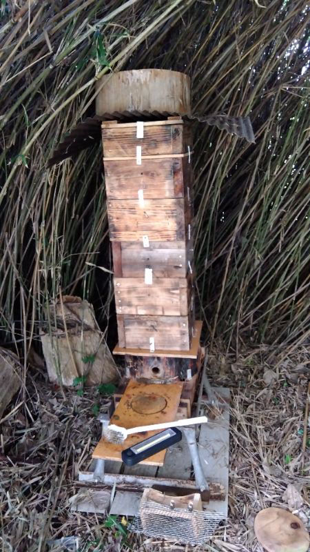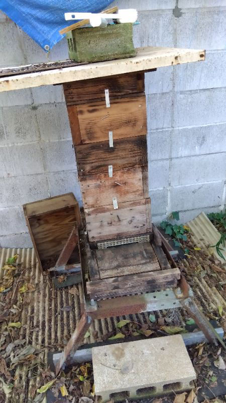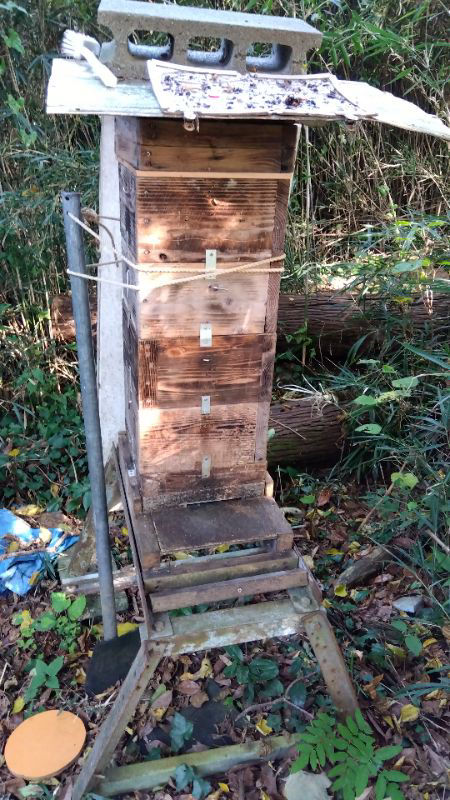 ⇧⇩ 第1待箱群、昨年4月11日自主入居、今夏採蜜1回。継箱必要か。