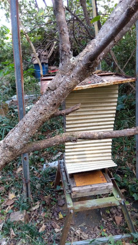 ⇧⇩ №1ニワトコ群、昨年4月23日自主入居。今夏1箱採蜜。 スズメ寄りつかない。