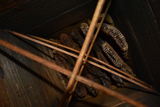 可能性のあるのは母屋中央群:夏分蜂して無王群となったため、大きな母屋はいらない・・・。スムシに占拠されたのか?・・・と思いつつ内検すると、もぬけの殻でした!。