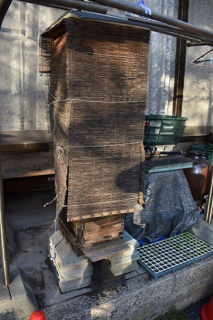 伯父さんと作業していると、蜂友がたまたま来られたので、「蜂雲が山の彼方に飛んで行ったよ。自宅群のどれかが分蜂か逃去したようだ。」と言って確認してもらいましたが、わからなかったそうです。