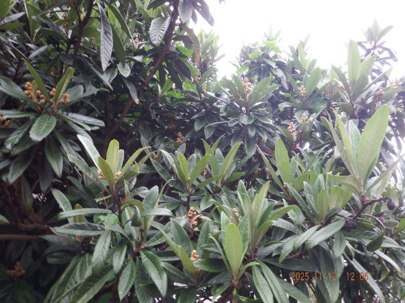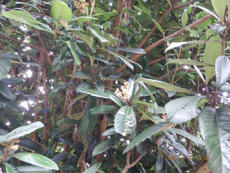 枇杷の花が昨日から咲いて居ますね。琉蜜が始ると訪花しますね。