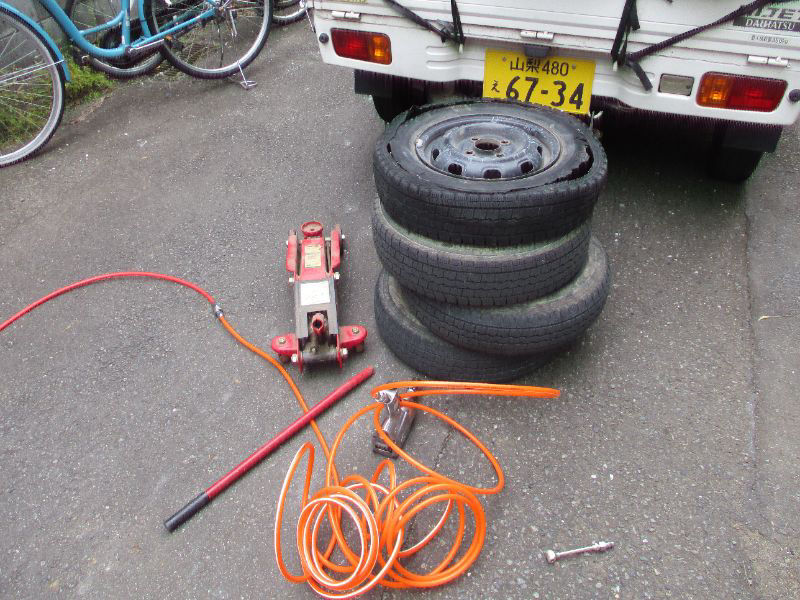 実は、偶然ですが、朝、出掛ける前に突然猟友会の仲間から電話があり、タイヤを13インチに交換したから上げるという事で、スタッドレスタイヤ4本が届いたのです。帰ってきたらタイヤ交換をしようと思っていた矢先でした。