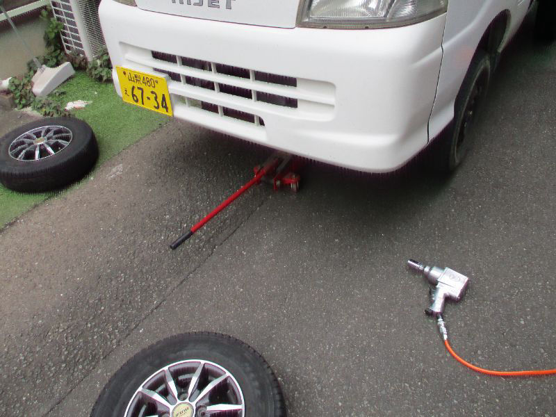 本日、早速タイヤ4本を交換しました。家でのタイヤ交換はガレージジャッキとコンプレッサを使いエアーレンチで行いますので、かんたんにできます。
