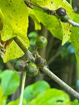 今日はお天気が良かったので家の周辺を散策していると嬉しい発見がありました。クロウメモドキの実がなっていました。クロウメモドキは我が家周辺に沢山あったのですが私が良く知らないでほとんど伐ってしまいました。クロウメモドキがスジボソヤマキチョウの食草だと知って慌てて家の周りを探したら1本だけ残っていました。クロウメモドキは雌雄別の樹木でオスの木で実を付けなければ我が家の庭からが絶滅してしまいます。それが今日よく見ると実がついてるではないですか~ちょっと増やしてまた我が家の庭に復活させてみたいと思いました。