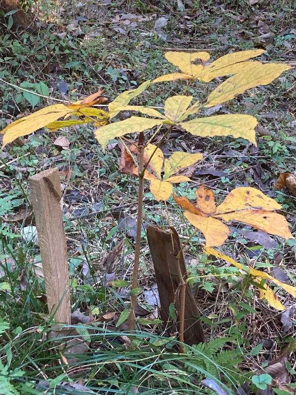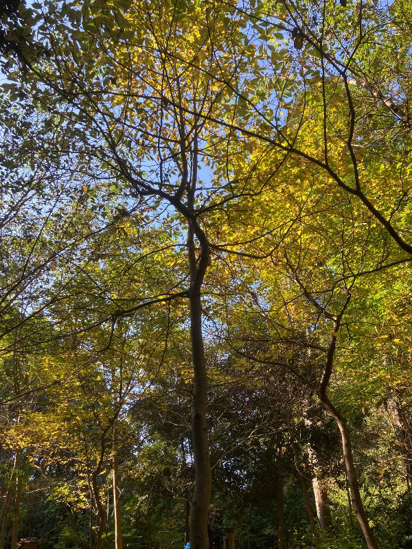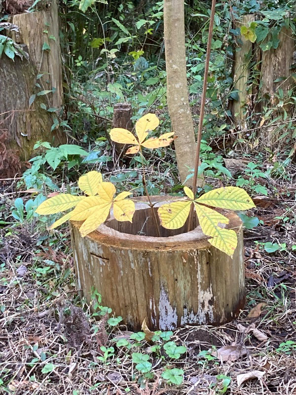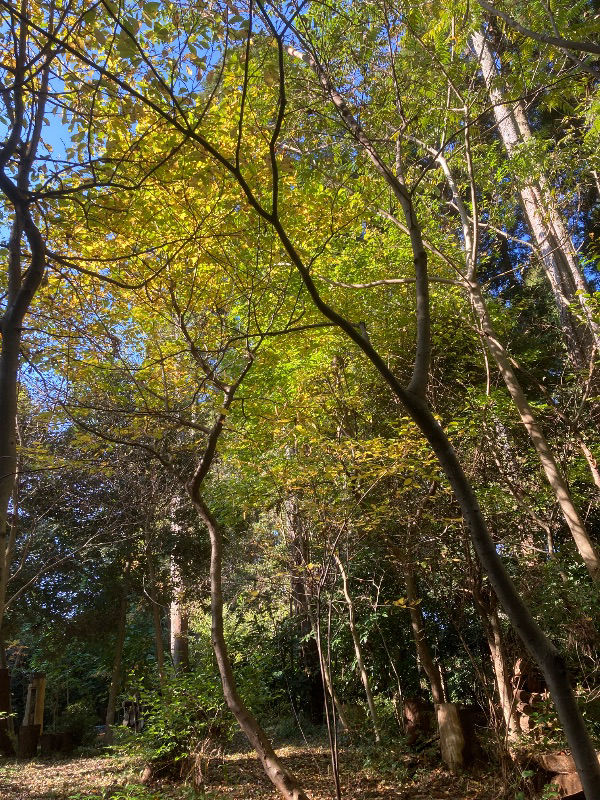 数十年前のヒコ生えは八方に広がり、残った2本が今朝はついに倒れだした。