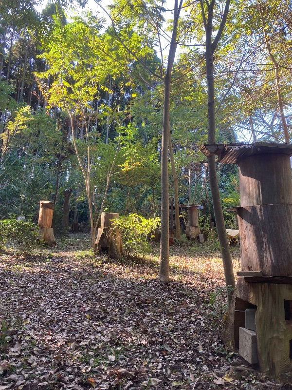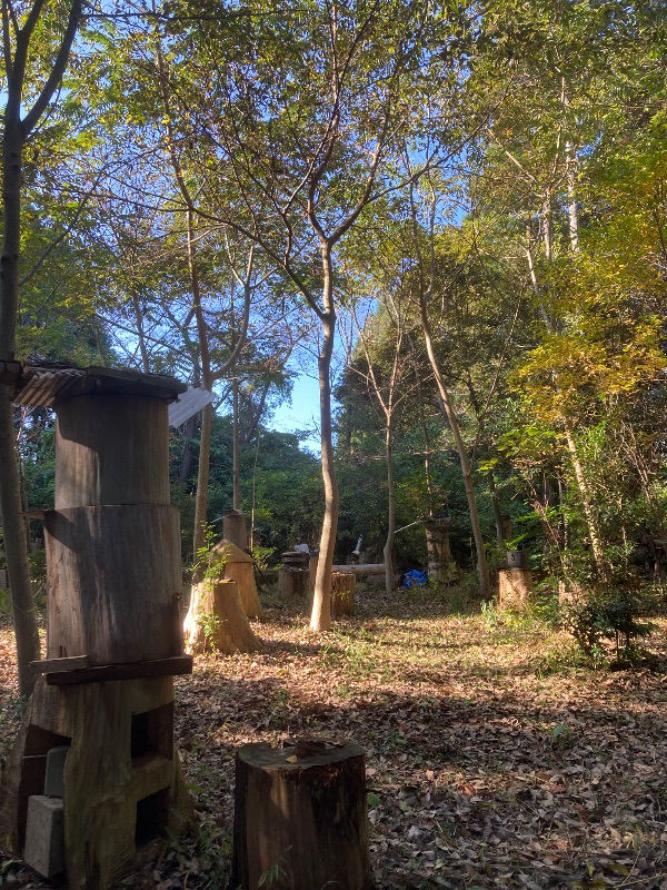 師匠の丸洞、今朝は二ホンミツバチの集密も他の蜂も居なくなった。
