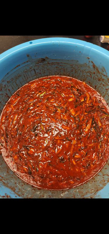 白菜の一時浸け終わり。塩抜きして準備万端ヤンニョムも仕込み完了