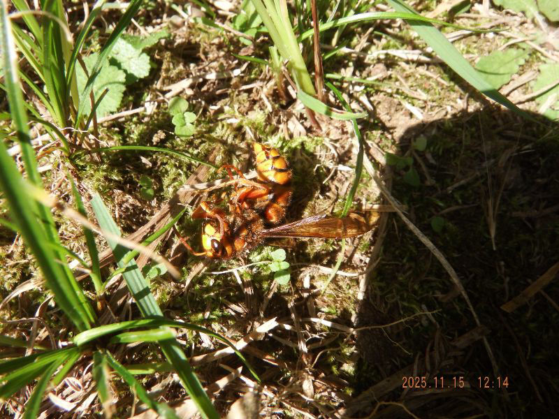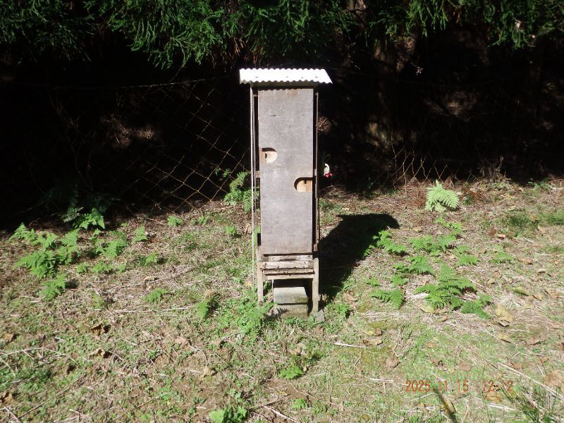 令和7年11月12日 水曜日 大分山荘より3km先の蜂置き場隣の目視確認をしましたね。オオスズメバチが巣箱内に入ってましたね。帰って来て写真で分かりましたね。