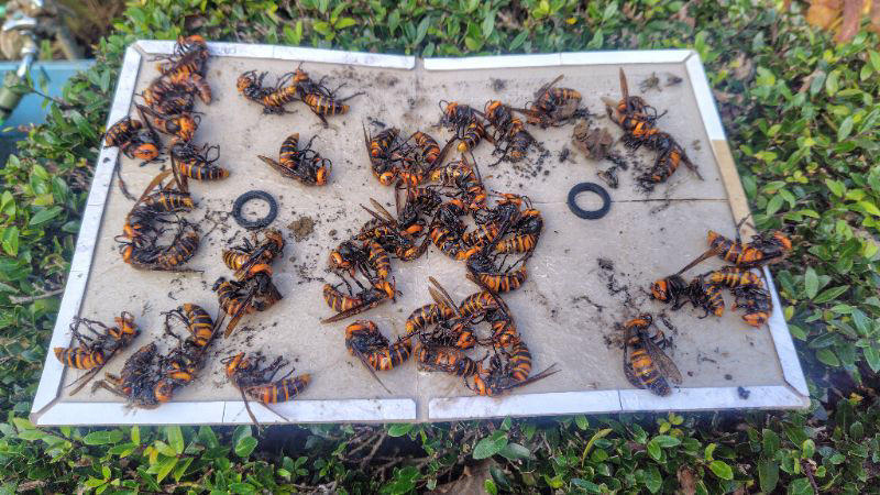オオスズメバチ、10月になって気温が穏やかになってから増えてきましたね。11月に入ってからも、晴れた日にはこんな感じ。
