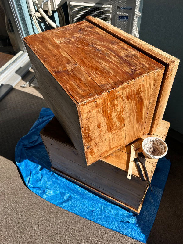 手に入れた茶箱 テスト塗装 底面に4〜5回