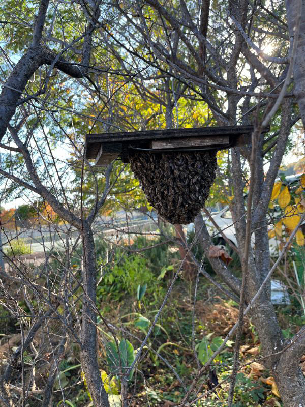 集合板に蜂球ができています。今は11月??どこから来たのでしょうか??