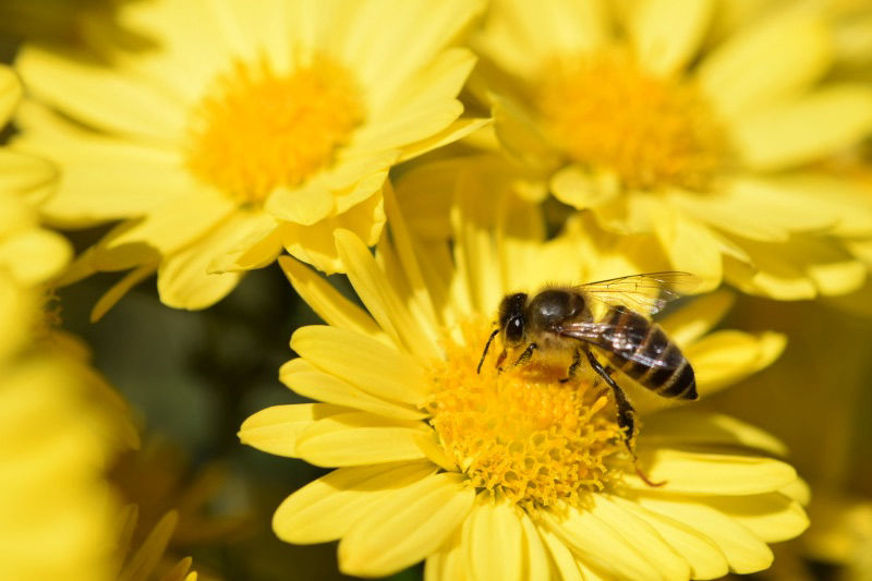 菊の花に訪れたニホンミツバチ