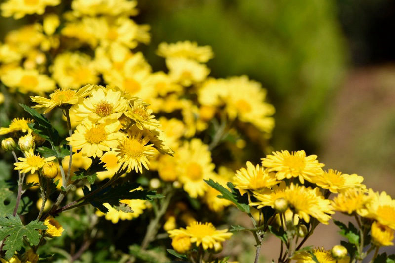 鮮やか黄色の菊は花粉たっぷりです。
