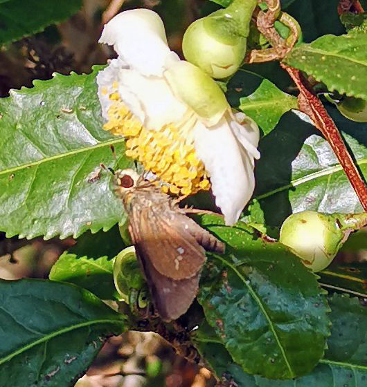 あれぇ~、チャバネセセリも来てる? 蝶は、蜜を吸うのですよね?じゃあ、花粉だけじゃなく、蜜も結構飲めるのかしら~??と思って調べてみたら、花粉は有力・蜜も普通に採れるようです。