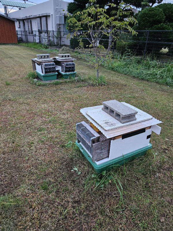 秋にオオスズメバチ被害に遭い蜂数を減らしてしまった西洋ミツバチ巣箱