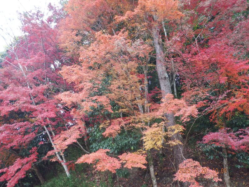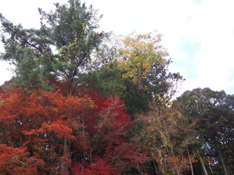 紅葉が綺麗ですね。もうすぐ終わりですね。右上の黄色い葉はムクロジですね。
