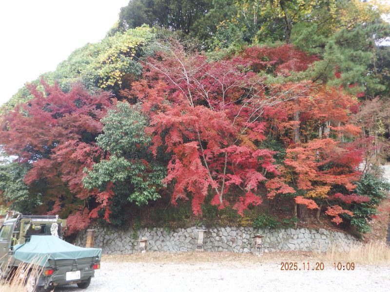 令和7年11月20日 木曜日 自宅蜜源樹の森:管理用道路を軽トラが通るように、バックホウで丸太を移動しましたね。