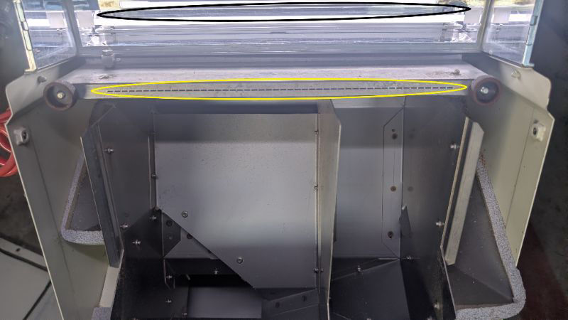 黄色丸はカメラで不良物を検知 即座にこの穴から2.5k圧のエアーで吹き飛ばします。