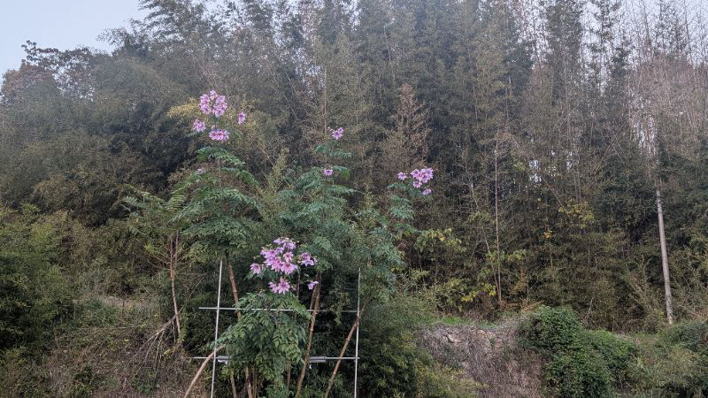 左側の畑にはノッポの皇帝ダリアと南瓜が植えてあります 南瓜は産直に出荷している様です。