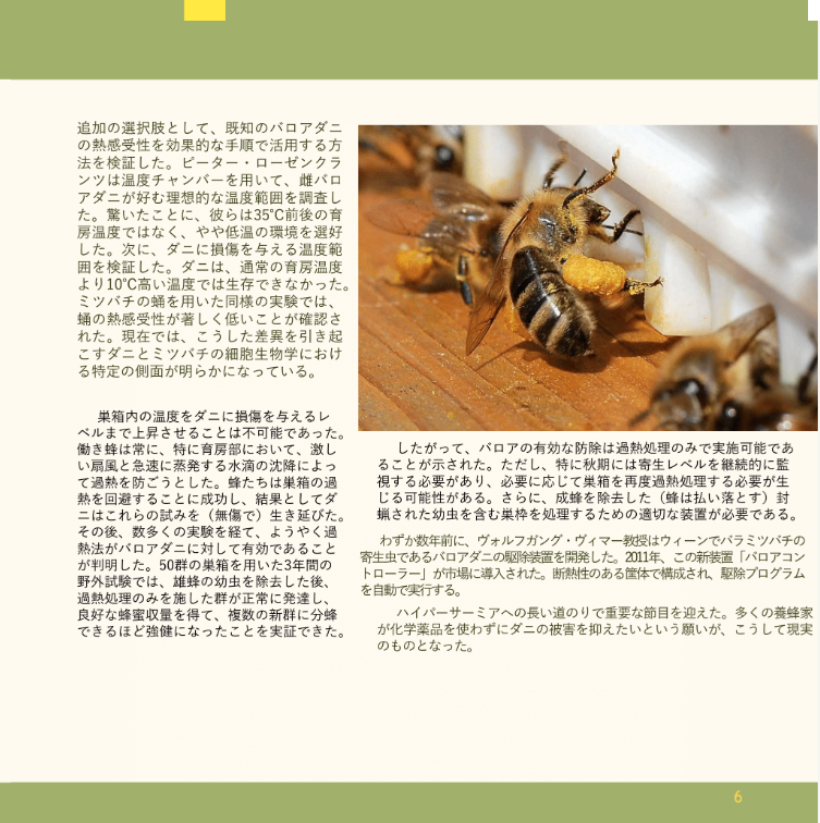 ミツバチサミットにはあいにく参加していませんが、今後の展開で情報をいただけることを期待しています。日本には認可されている手法が農薬系のみで薬剤が少ないですし、海外からの手法を検討する機会が少ないと感じています