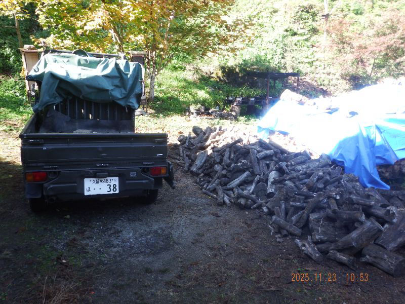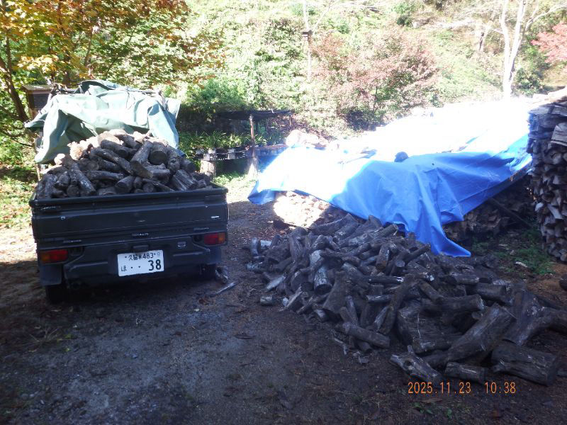 割らないで好い薪はブルーシートを剥いで積み込みましたね。