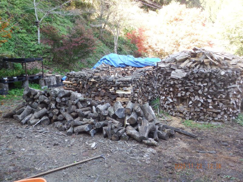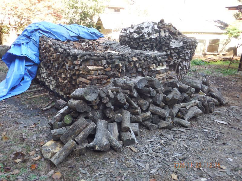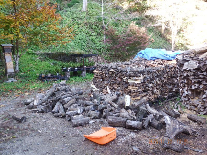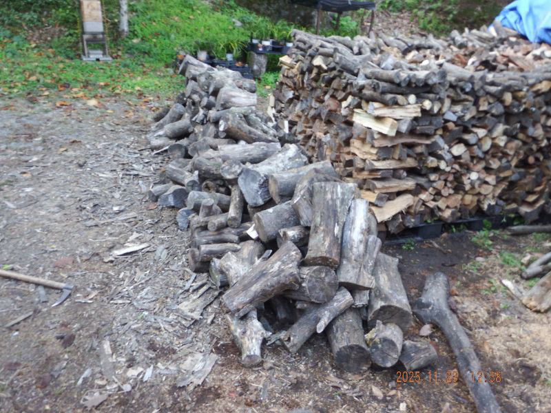 手前の薪丸太は明日割る予定ですね。
