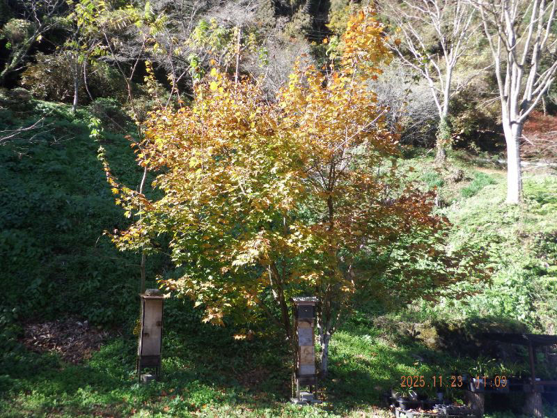 令和7年11月26日 水曜日 大分山荘にて:25日18時01分の地震はログハウスが可なり揺れ動きましたね。熊本県の阿蘇地方で5強でしたが巣箱は皆さんどうでし