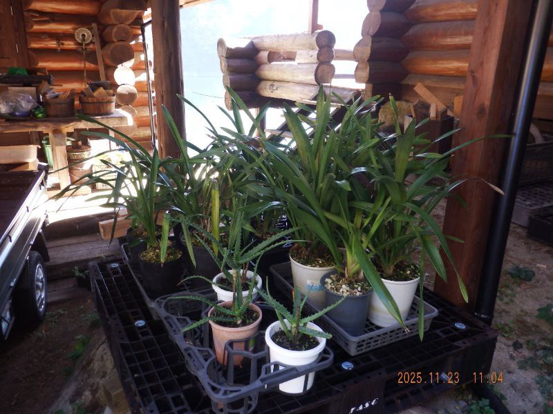 令和7年11月27日 木曜日 大分山荘にて:キンリョウヘンとミスマフェットとフォアゴットンの本日の状態ですね。花芽はキン:1/39 ミス6/6 フォア6/6です