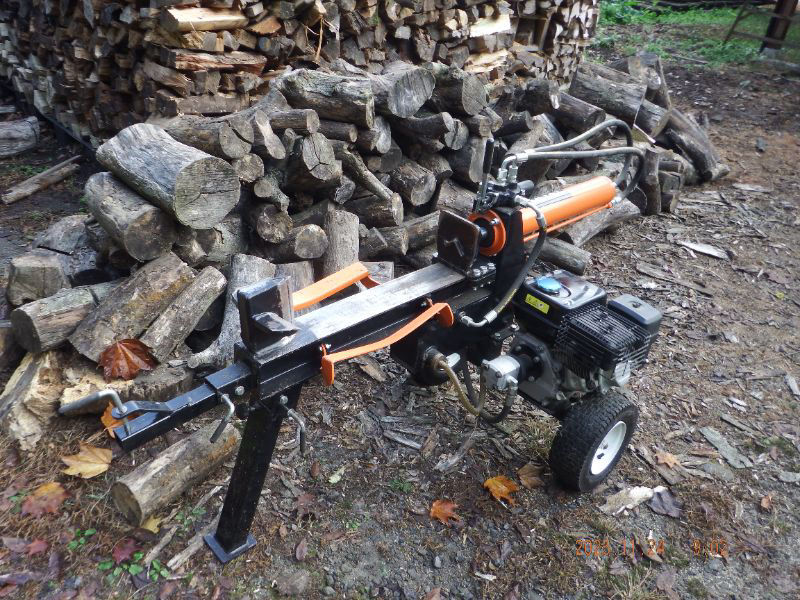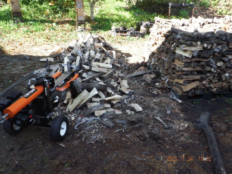 薪割り機の清掃をして居ますね。18トンですが、22トン用のエンジンを載せていますね。