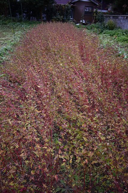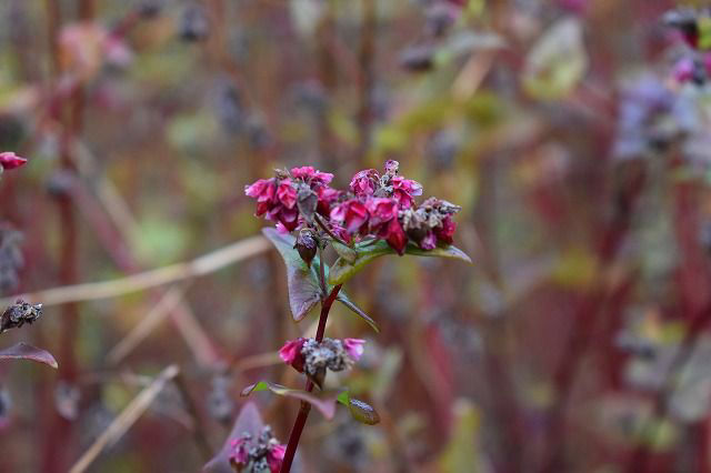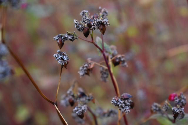 花だけでなく、寒くなると茎葉や結実した幼果も赤くなりますが、充実すると普通の蕎麦とほとんど違いがありません。