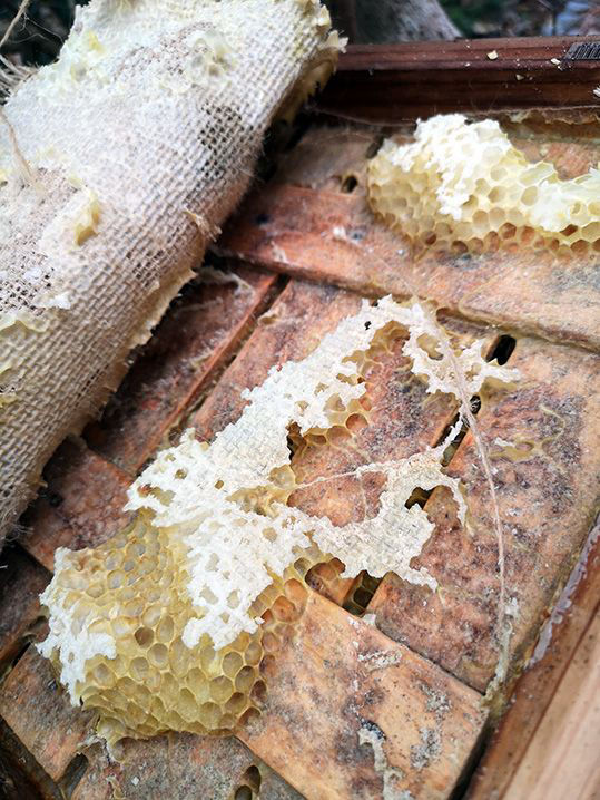 まさか!スムシの台頭?貯蜜房に穴が開けられちゃって、蜜垂れ??!急いで様子を見に。。。