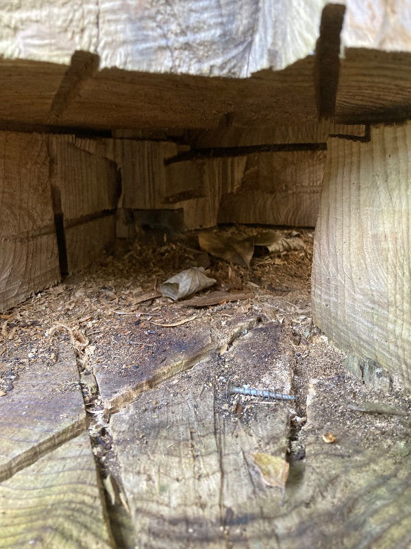 その上が地下駐車場のような開放空間でその上が巣箱の底。