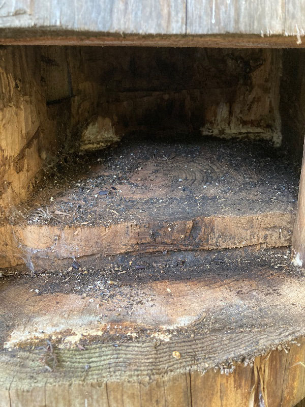 久しぶりに扉を開けたら誰も(ミツバチ)掃除をしないのでゴキブリの糞だかクモだか、汚い。