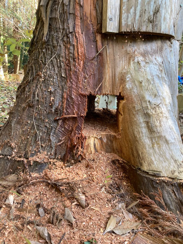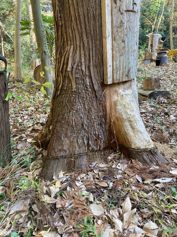 垂直伐り、水平伐り素晴らしい出来栄えです、私は切り倒せばいいので特に水平伐りは出鱈目です。