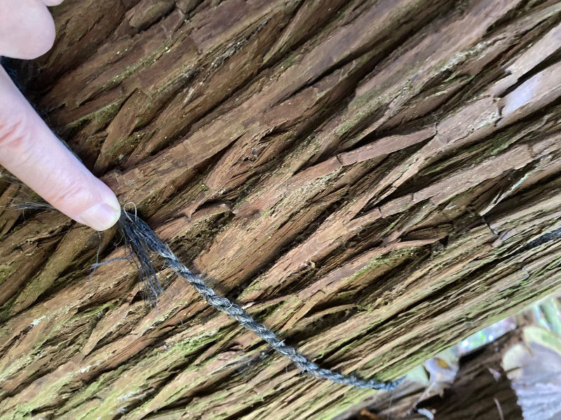 円周なら正確に測れる。 紐を持ち出して両手で杉を抱きかかえるように紐を回しても右手と左手の先がくっつかない。