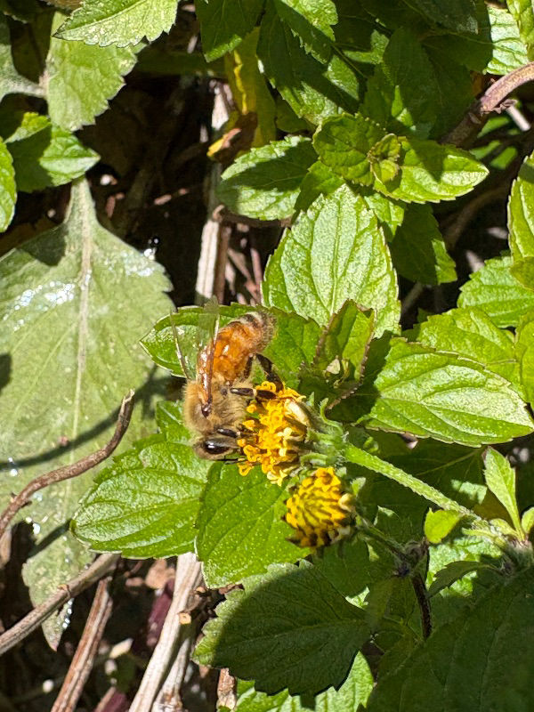 巣箱となりのセンダンソウにはセイヨウミツバチが来ていました。