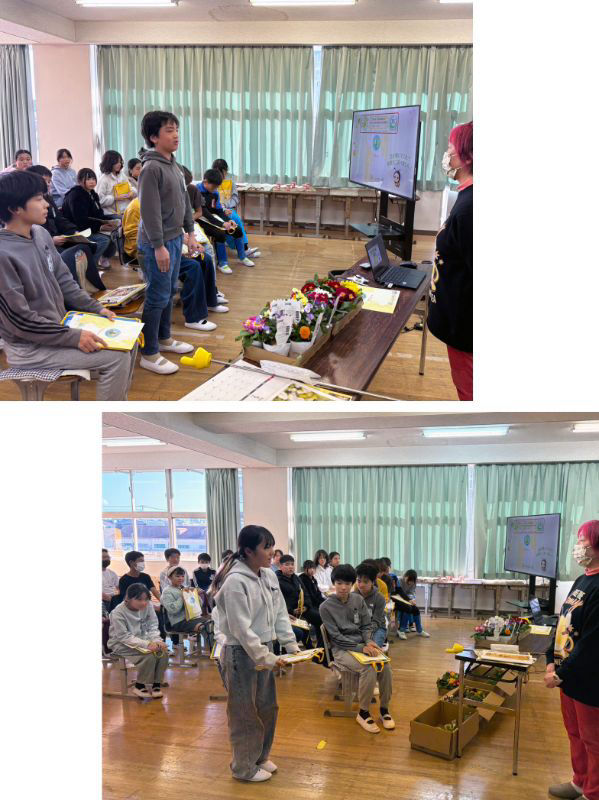 最後に、今日の授業で心に残った事を聞きました。ずっと被り付きで反応していた虫大好きそうな男の子は、「蜜蜂って一種類だと思って居たけど、西洋ミツバチと日本ミツバチの見分けがつきそうです。」と話してくれました。最後に代表の女の子がお礼の挨拶をしてくれましたが、途中からNo原稿で、「蜜蜂が私達の暮らしに重要な役割をしてくれている事を知れてよかった。家に帰ったら、家族にも話してあげたい。」と、、、蜜蜂を大事なんだと、皆に広めて欲しい事は、正に、私が伝えたかった事。時間がオーバーして言えなかった事です。感じ取ってくれて、私の方がお礼を言いました。子供の内から、蜜蜂に親しみを持って貰う事は、必ず、保護に繋がっていくと思うからです。