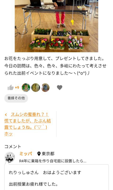 子供達の反応も良さげで、前職のご経験と蜂への愛情のなせる技ですね。