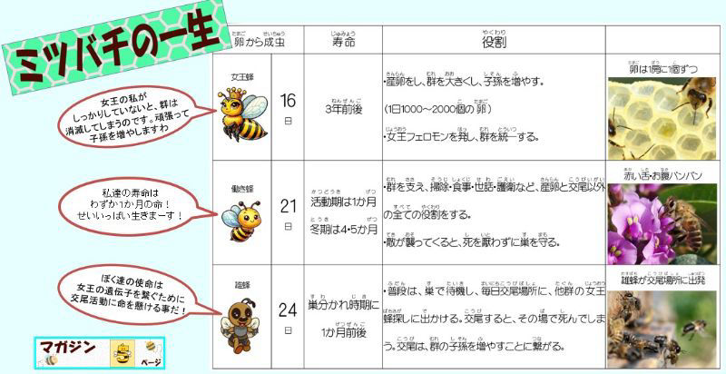 「そうだよね~。その為だけに生きるなんて、チョッと厳し過ぎるよね~。。。でもそれが蜜蜂が生き残って来た生き方なんだよね。」・・・一気に、雄蜂に同情が集まりました。この純な反応が、私には懐かしくて、私も一気に前職の感覚を思い出させて貰いました。背丈は、私よりも大きい子達が、初めて知る生態に食い付いてくる。小学生の良い所の一つです(^^♪