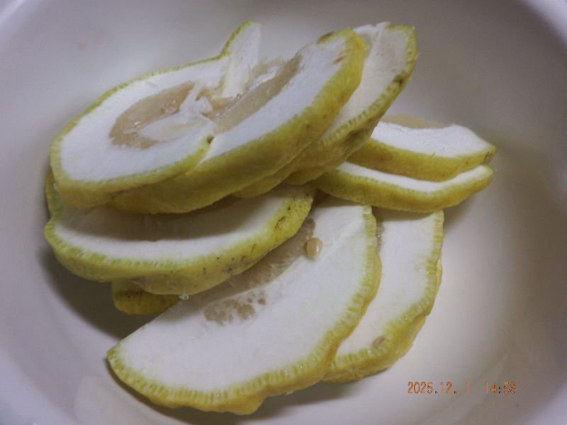 1年ぶりに作りましたね。鬼柚子は甘酢漬けにしたら最高に美味しいですね。野菜と言う感じですね。