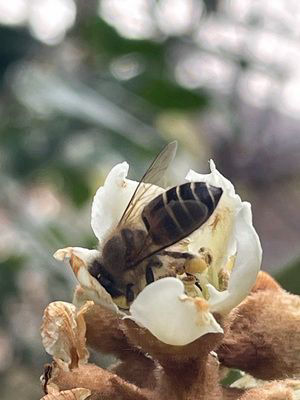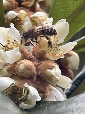 この時期に咲くビワの花は本当に貴重ですね!ニホンミツバチを知る前はビワの花が冬に咲くことも知りませんでした。