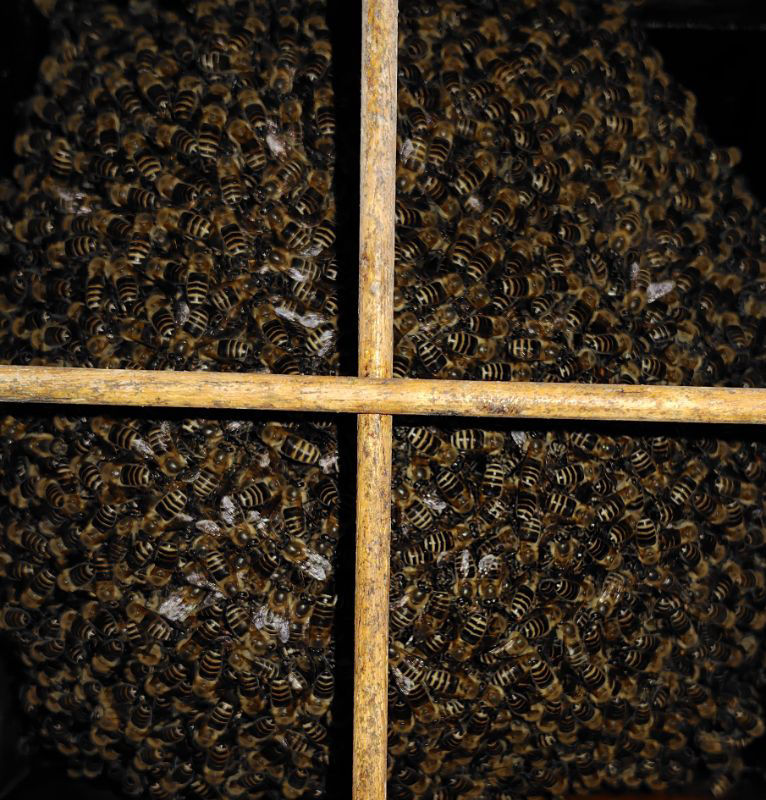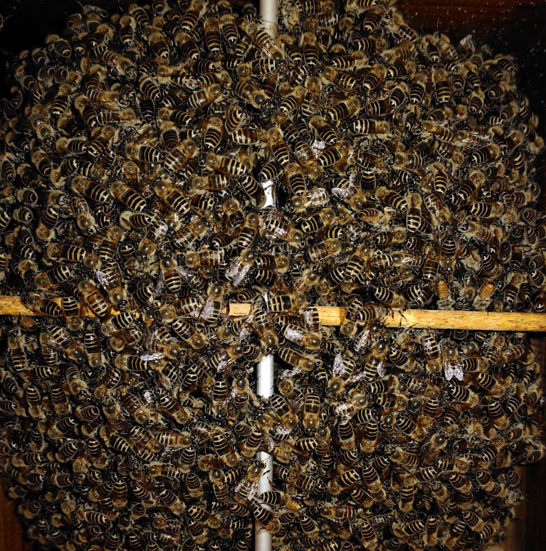 巣箱内部の様子(重箱は6段)、巣板は5段目辺り・・・。