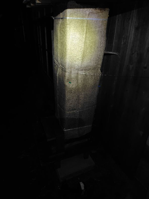 山の方の巣箱(5群)は冬支度は終わっているが、我家に置く巣箱(2群)は未だ冬支度をしてない。巣箱の点検に併せて、ドンゴロスで巣箱を囲った。(昨年は12/07に実施)