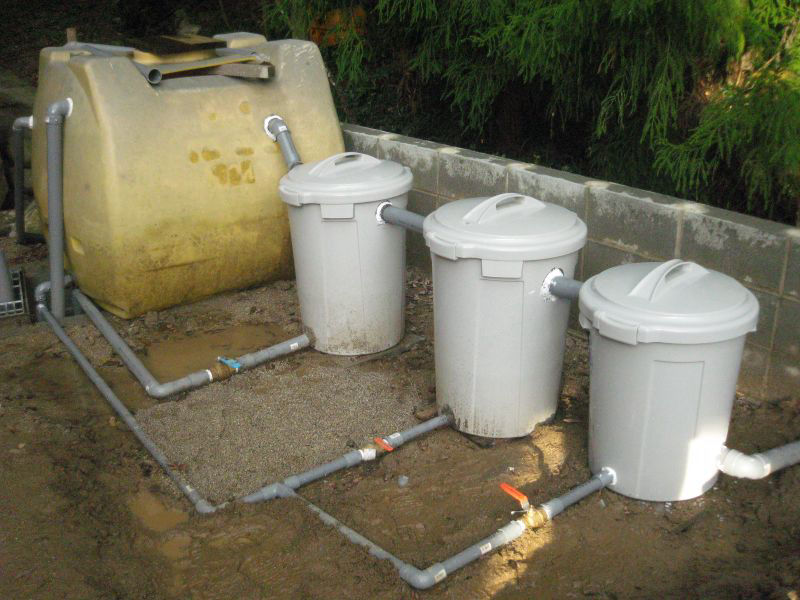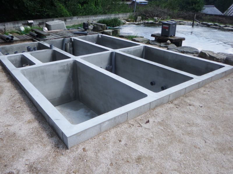 一番最初に、自分の手つくりで作成した浄化槽ですね。容量が小さいので、45トン用を作成しましたね。此の浄化槽と繋いで完成しましたね。