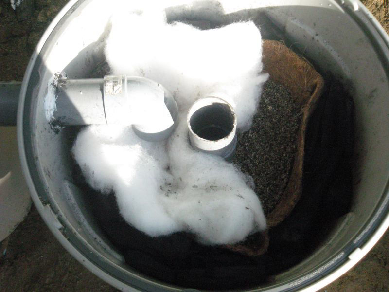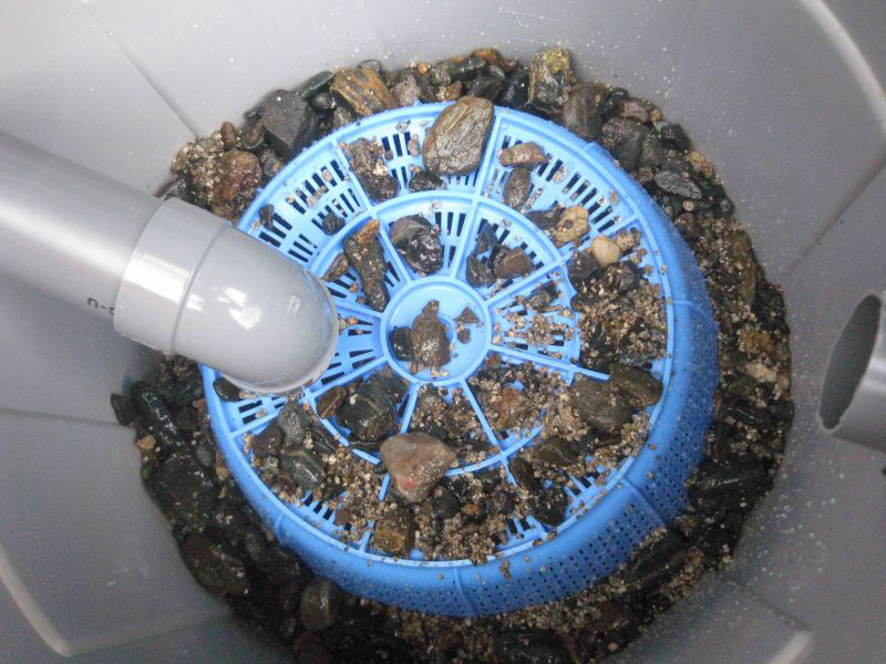 ポリバケツ内は川石を洗って敷いて居ますね。此処で大体綺麗に成りますが、雨が多いと濁るので掃除は大変でしたね。出来るなら、井戸水が一番良いですね。