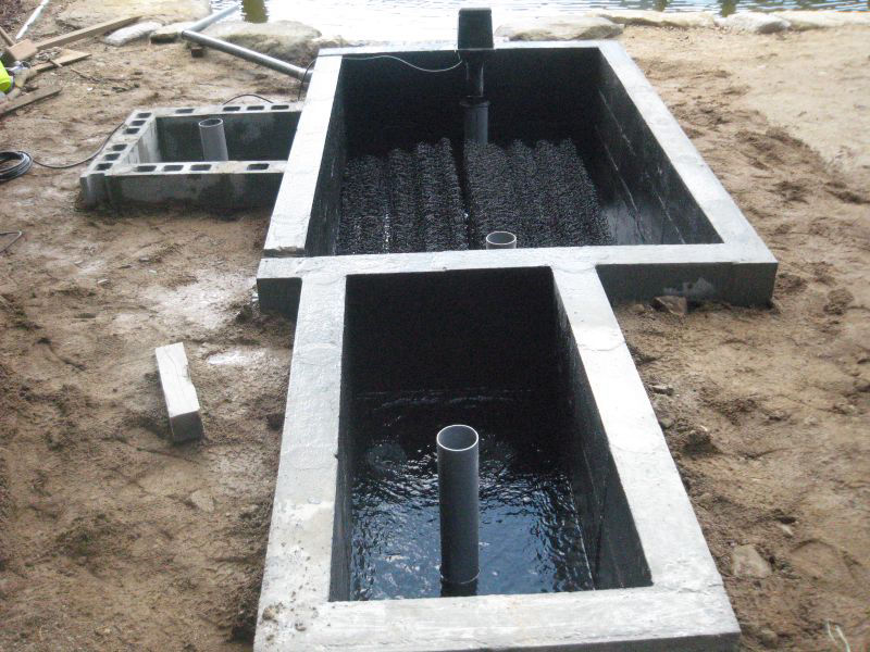 自分が設計して、業者に作って頂いた浄化槽ですね。45トンの池用ですね。この上に35mmの杉板を張りますね。