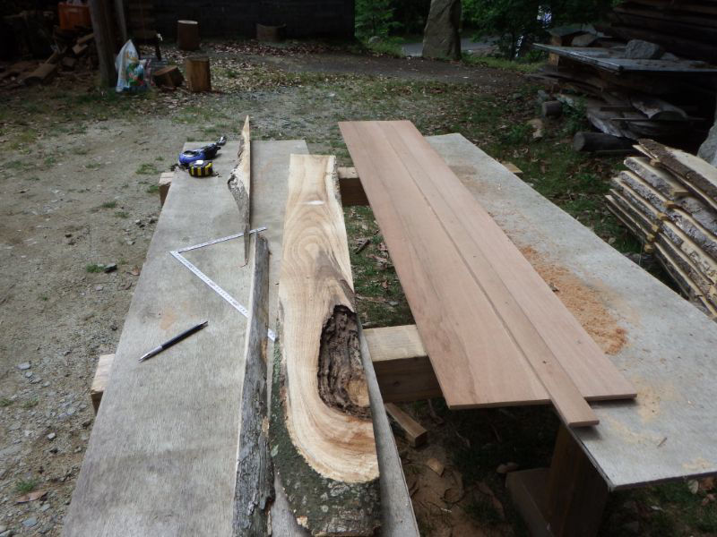 この材はイイギリですね。巣箱をカットしてからは、板材は150mmでカットして居ましたね。日本ミツバチを思い立つ前から樹木が出たら山荘に運び乾燥させていましたね。