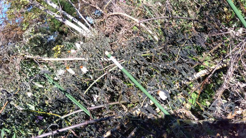 昨日まで満腹に蜜いただいて、来年までダリアは辛抱してチョウダイ。蔓ソバ、ヤツデ、山茶花で我慢。