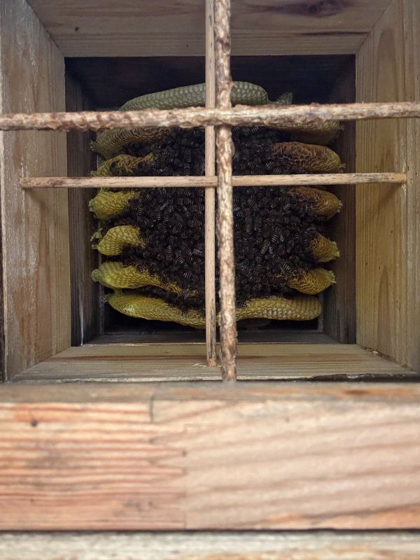 消滅後、他群の餌としての役目も終えたようなので解体して持ち帰った巣箱。スムシ被害も無く良好な状態だったのでオブジェとしてみました(=^・^=)